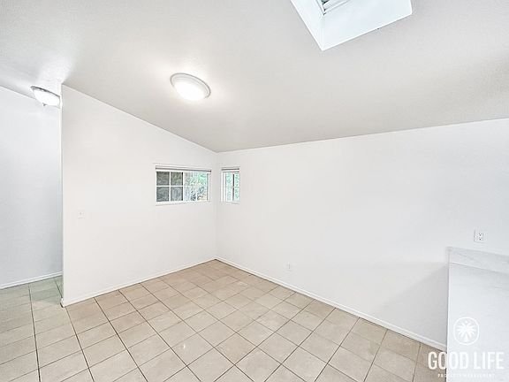 - Exterior features: Garbage included in rent, Granite Countertop, High/Vaulted Ceilings, Range/Oven, Remodeled kitchen, Stainless Steel Appliances, large backyard, trash