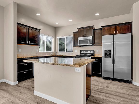 Welcome to this nice home located on a quiet cul-de-sac just 3 minutes from downtown Eagle and 2 mins from Guerber Park. New luxury vinyl plank flooring downstairs, fresh interior paint and modern trim. The kitchen features granite countertops and stainless steel appliances, with a good-sized pantry and an island. A separate living room and great room offer some added flexibility, and so does the 3-car garage. Primary bedroom has dual vanities, a separate tub and shower and a walk-in closet. Laundry room is upstairs for convenience. There is a lot to love about this move in ready home. Come see for yourself!
