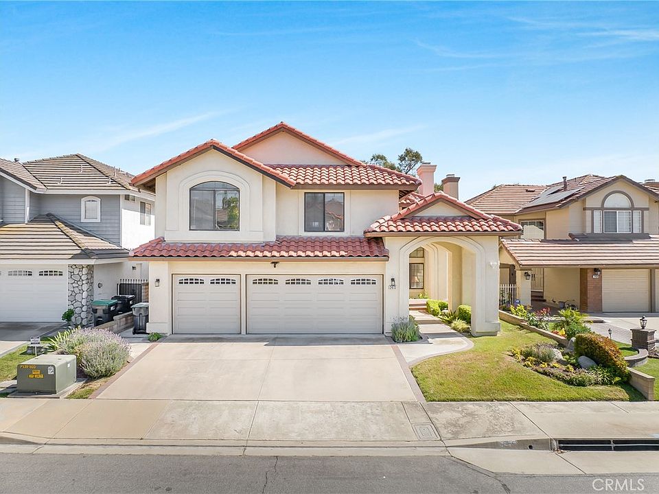 Location, Location, Location! This very well maintained North Chino Hills property has 5 bedrooms, 3 bathrooms (1 bedroom 1 bath downstairs), plus a bonus loft upstairs, and 3 car garage. Double front doors lead to a welcoming entry. High ceiling extends to the living room with fireplace and plenty of natural light. Formal dining room with custom chandelier. Family room also has high ceiling, fireplace, plus a wet bar. Kitchen with tile counter tops, center island, breakfast nook, built-in microwave, oven, 5 burner stove top, dishwasher and kitchen hood. Downstairs also features a bedroom/office. Upstairs has 4 bedrooms plus a bonus room. Primary bedroom with vaulted ceiling and a walk-in closet. Enjoy the beautiful canyon and hills views from the primary private balcony. Primary bathroom has dual sinks, bathtub and separate shower. Main level laundry room with storage. Other features include laminated floor in the living room, formal dining room, family room and downstairs bedroom, tiles in kitchen and bathrooms, carpet in upstairs bedrooms. Custom chandeliers, recessed lights. Completely new roof with new underlayment and tiles, new epoxy garage flooring. Plenty of trees and flowers. Peaceful and quiet back yard with rolling hills views. One of the best locations, Walking distance to National Blue Ribbon Award Country Springs Elementary. English Springs Park is nearby. Close to City facilities and shopping centers.
