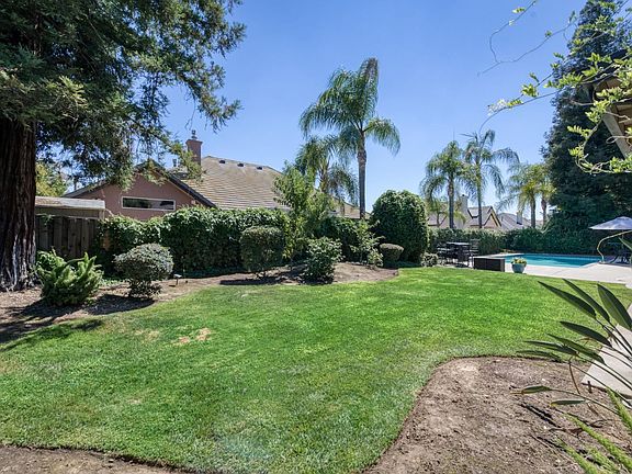 Prestigious Northwest off Van Ness Extension location!! Enjoy entertaining in the large great room, bonus room, separate formal dining room and beautiful large yard with pool and spa. Lush mature trees at the entrance, lovely fountain and freshly painted exterior. Gourmet kitchen with granite countertops, center island, breakfast bar and nook surrounded with beautiful picture frame windows over looking yard. An isolated bedroom with new laminate flooring and full bath located downstairs. Lots of natural light and high ceilings through-out this 5 Bedroom, 3.5 Bath fantastic home. Luxurious owner's suite located upstairs along with 3 Large bedroom. Three car garage, owned solar, newer a/c unit and much more. Don't miss this wonderful home and amazing location near Sierra Sport and Racquet Club, San Joaquin Country Club,restaurants and many shops.Call your favorite realtor today to see this home.