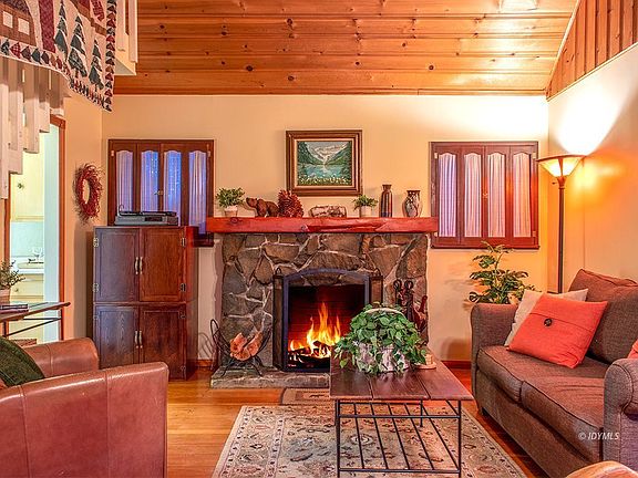 A cozy get-a-way in our magical mountain. .The high beam ceilings in the living-room and dining room presents an open airy feel to this charmer. The Vintage rock fireplace gives one a feeling of yesteryear. The views of the tree tops has the feeling of peace and tranquility. This darling cabin is on cul-de-sac for more privacy. Except for the septic to be certified. This cabin will be sold as is. A must see.