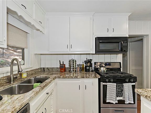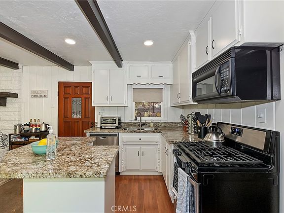 This property is a secluded 3bdm/2bath, tri-level home in the San Moritz neighborhood, offering serene forest views and ample space for relaxation and entertainment. The main floor features a high-ceiling living room with large windows, a spacious kitchen and dining area with a bedroom, and 2 bathrooms. Upstairs is a cozy loft with a skylight and balcony that serves as a 2nd bedroom. Downstairs, there's a 3rd, master-size bedroom with a balcony, laundry facilities, and plenty of storage. Additionally, there's a game room with a wet bar and yard access. Outside, a 2-level patio overlooks the mountains and a creek that runs through the back of the property. This house sits on .38 acres (16,552 sq.ft.) with an enclosed back yard that is hard to find in mountain areas, perfect for outdoor activities and potential expansion.