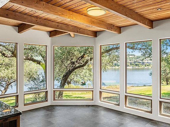 Exquisite Lakefront Living with Breathtaking Views Nestled in a prestigious gated community on the tranquil shores of Lake Travis, this stunning waterfront retreat offers an unparalleled blend of elegance and comfort. Boasting 4 spacious (one is a spacious bunk loft_ bedrooms, 3 luxurious bathrooms, this single-story masterpiece is designed for both relaxation and entertaining. Step inside to soaring vaulted ceilings with exposed beams, enhancing the home's airy ambiance. Walls of windows invite natural light to pour in, showcasing sweeping panoramic views of Lake Travis and the rolling hills beyond. Venetian plaster walls add a touch of timeless sophistication, while an inviting courtyard provides a serene space to unwind. The heart of the home is the gourmet kitchen, featuring a large center island, brand-new stainless-steel appliances, and ample prep space, making it a chef’s dream. The open-concept design flows seamlessly into the grand living area, where you can gather by the fireplace or step outside to enjoy the lakeside breeze. For those who work from home, the private office with extensive built-ins offers the perfect blend of functionality and style. The oversized three-car garage ensures ample storage, while the private boat dock allows for effortless lake access. Located in a quiet, upscale neighborhood surrounded by rolling hills, this home is the ultimate escape from city life while still offering modern conveniences. Whether you’re savoring the sunset over the water, enjoying a day of boating, or simply relaxing in the luxurious comfort of your home, this Lake Travis sanctuary is a rare opportunity to own a piece of paradise. Schedule your private tour today!