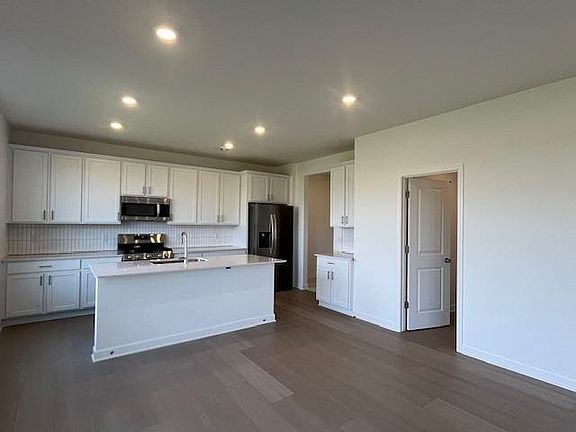 The elegant Berkley is a quick move-in opportunity for October that you won’t want to miss! This two-story home offers 4 spacious bedrooms, 3 bathrooms, a 3-car garage, and a beautifully designed layout that blends style with everyday comfort. Inside, the open-concept main level features 9-foot ceilings, abundant natural light, and a cozy electric fireplace in the living room. The modern kitchen showcases quartz countertops, stainless steel appliances, a walk-in pantry, and a large center island—perfect for entertaining or casual dining. Upstairs, you'll find all 4 bedrooms, a versatile loft, and a convenient laundry room. The owner’s suite includes a private bath and walk-in closet, offering a peaceful retreat. Located in a vibrant and expanding community, this home will soon be just steps away from a future neighborhood park—offering green space for outdoor activities, relaxation, and connection with neighbors. —this Berkley home is the perfect blend of elegance and functionality. Ask how you can qualify for $5,000 in closing costs with seller's preferred lender.