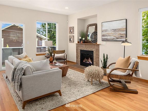 Tucked away in the secluded Webster Place community on a West Seattle hillside, you'll find this wonderfully charming three bedroom home! You will love the bright and open main level with gleaming hardwoods, lots of windows, and a cozy gas fireplace. The modern kitchen has a gas stove, breakfast bar, stainless appliances, and an adjacent dining room. Continue upstairs to enjoy the cathedral ceilings in all three bedrooms, as well as skylights in the bathrooms and hallway! Low-maintenance backyard has several options for outdoor relaxing, playing, and entertaining. Lower level laundry room with access to the attached two car garage. Newer tankless water heater powers efficient hydronic radiant heat throughout the home. New roof this year!
