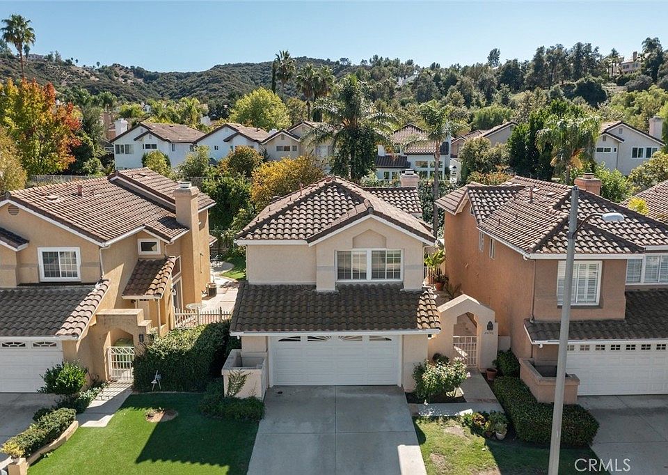 NESTLED IN THE HILLS ON A FLAT CULDESAC STREET IN THE EVER POPULAR GUARD GATED NEIGHBORHOOD OF CALABASAS HILLS. NEARBY IS THE AWARD-WINNING LAS VIRGENES ELEMENTARY SCHOOL BAY LAUREL, A PLAY PARK, AND TWO RESORT STYLED HOA POOL GROUNDS. GATED COURTYARD ENTRY. WHITE ON WHITE KITCHEN, TILED COUNTERTOPS, DINING AREA OPENS TO OUTDOOR TRELLIS COVERED PATIO. WALLS OF WINDOWS. FIREPLACE IN LIVING ROOM. WOOD AND TILED FLOORS. ENSUITE BATHROOM IN MASTER, MASTER WITH PITCHED CEILINGS AND WALK-IN CLOSET. SECONDARY BEDROOMS SHARE THE HALLWAY BATHROOM. GRASSY YARD WITH TRELLIS COVERED PATIO. CALABASAS OFFERS A PRIVATE MEMBERS ONLY COUNTRY CLUB WITH GOLF COURSE, THE COMMONS, AN ENTERTAINING DINING AND SHOPPING, OLD TOWN FARMER'S MARKET ON SATURDAY'S, CALABASAS CITY OWNED TENNIS AND SWIM CLUB, A RESIDENT'S ONLY LAKE (Additional fee) HIKING AND BIKING, AND MORE.