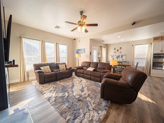 One of the largest homes available in King’s Crossing, this standout property features a built-in 300-gallon custom automated fish tank (can be converted to a flex room). Also enjoy upgraded LVP flooring, a private office with shiplap and built-ins, and an eye-catching kitchen with a custom epoxy ocean-themed counter, a 5-burner gas cooktop, custom countertops, double ovens, and a gorgeous black stone backsplash. The living area includes custom fireplace built-ins and opens to a sunny breakfast nook. The spacious primary suite has wood-accent walls, dual sinks, a massive double shower, and a large walk-in closet. Upstairs includes a huge game room, three bedrooms, two full bathrooms, and a dedicated media room. Two water heaters. Covered patio and easy-to-maintain backyard. Zoned to highly rated Katy ISD schools with convenient access to trails, parks, and shopping. Ready for your next chapter, schedule your appointment now!
