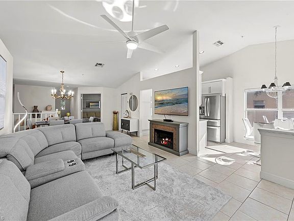 Welcome to this beautifully updated 3-bedroom, 2-bathroom lake view coach home with an attached 1-car garage, located in the charming Lakemont Cove neighborhood of Pelican Landing. This stylish residence has been transformed with designer-grade upgrades, including a modern kitchen with quartz countertops, soft-close cabinetry, stainless steel appliances, and sophisticated lighting and fixtures throughout. Vaulted ceilings and an open-concept layout create a bright, airy ambiance, while the screened lanai offers tranquil views of the lake—perfect for relaxing or entertaining. The spacious primary suite features serene water views, a beautifully remodeled en-suite bathroom, and generous closet space, making it a true retreat. Pelican Landing offers an unparalleled lifestyle with resort-style amenities, including a private 34-acre island beach park accessible by boat shuttle, a full-service fitness center, tennis and pickleball courts, and complimentary kayaking and sailing from the community’s marina. Golf enthusiasts can enjoy optional membership at the private, 36-hole Golf Club "The Nest". Just minutes from your door, you'll find the best of Southwest Florida shopping and dining—from the boutiques and restaurants at Coconut Point and Promenade at Bonita Bay to the upscale options at Mercato and Waterside Shops. With luxury updates, stunning views, and access to both nature and nearby conveniences, this coach home truly has it all.