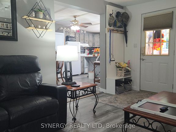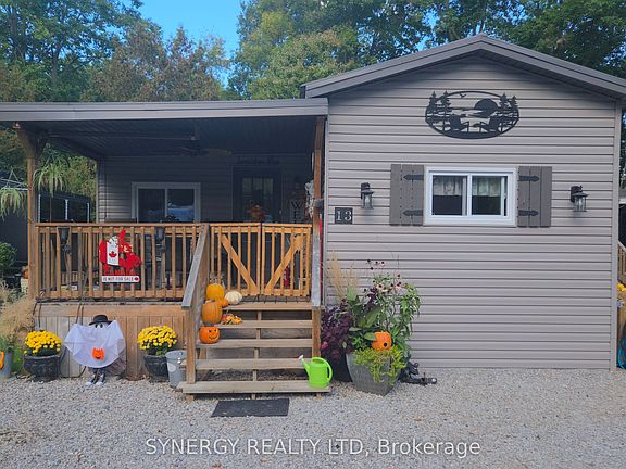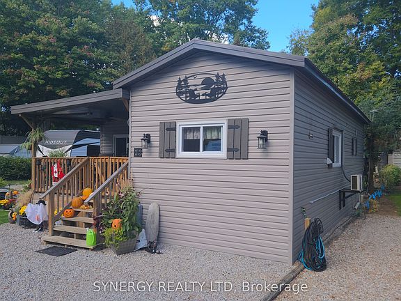 Attention all snowbirds! Welcome to Park Haven, a 6 month seasonal trailer park. This beautifully maintained and upgraded 2 bedroom mobile home offers a spacious, cozy and inviting living experience. This property boasts a range of impressive features and upgrades that will surely capture your attention. Step inside and be greeted by a thoughtfully designed interior that exudes both charm and functionality. The open concept living area is generously sized, includes a gas fire place and ample space for relaxation and entertaining. The kitchen has been recently updated offers a delightful space for preparing meals and gathering around the dining area to savor them with loved ones. The mobile home features two comfortable bedrooms, providing a serene haven for a restful night's sleep. Each room offers ample closest space along with the primary having access to the rear covered deck. The 4-piece bathroom has also been recently updated and is quite spacious for a mobile home. As you step outside, you'll be greeted by the charming covered front porch, a perfect spot for enjoying your morning coffee or relaxing with a book. The rear deck offers additional outdoor space, ideal for hosting barbecues or simply basking in the sun. The surrounding landscaped grounds are adorned with a variety of plants and foliage, creating a picturesque setting. Storage will never be an issue with the large storage sheds located with the property. Store your outdoor equipment, tools, and other belongings conveniently and securely. Additional noteworthy features include new siding, roof, soffit, and fascia installed in 2018, updated windows in 2025, new wall unit heat pump 2025, new washer-dryer, fridge and dishwasher also in 2025. Located in a serene and well-maintained community, this mobile home offers a tranquil retreat while still being within easy reach of essential amenities and recreational opportunities. NOTE: This home can be easily moved into another park or property or your choice.