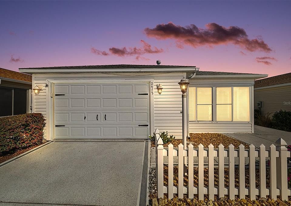 One or more photo(s) has been virtually staged. FANTASTIC 2/2 Colony Patio Villa featuring an ENCLOSED LANAI, INTERIOR LAUNDRY, and LOW-MAINTENANCE, STONED front and side yards - IDEALLY LOCATED - JUST MINUTES to LAKE SUMTER LANDING and all of the CONVENIENCES of County Road 466 (including the new Costco!) in the highly sought after Village of Lynnhaven! BOND PAID! NEW HVAC (12/2024)! As you approach this WONDERFUL home, you can’t help but notice the CHARMING white picket fence, DECORATIVELY PAINTED drive and walkways, and SPACIOUS FRONT and SIDE PATIOS — Ideal for RELAXING in the Florida sunshine or ENJOYING fun-filled OUTDOOR ENTERTAINING with friends and family! From the patio, step in to the FRONT ENCLOSED LANAI! This AMAZING room features THREE SETS of DOUBLE windows, ceiling fan, and a DECORATIVELY PAINTED floor creating the PERFECT spot to RELAX with your morning coffee, evening cocktail, or a good book! Enter through the front door into the OPEN CONCEPT floor plan of the living, dining, and kitchen. This SPACIOUS main living area boasts two sets of DOUBLE windows and a set of sliding glass doors for ABUNDANT NATURAL LIGHT! The AMAZING kitchen boasts WHITE cabinetry with PULL-OUTS, NEUTRAL countertops, GAS cooking, PANTRY closet, breakfast bar, and an EAT-IN DINETTE area. The primary bedroom features a GENEROUS WALK-IN closet. It’s en-suite bathroom is well-appointed with WHITE cabinetry and a WALK-IN shower. Bedroom two features a built-in closet. The second bathroom offers a WHITE vanity with NEUTRAL top, tub and shower combination, and a hallway LINEN closet. A CONVENIENT, INTERIOR LAUNDRY closet offers additional shelving for EXTRA STORAGE needs. Completing the package is an 18’x22’ one and a half car garage with built-in WORKBENCH, shelving, UTILITY SINK, ATTIC FAN, Nova WATER FILTRATION SYSTEM, and PLENTY of space for a car and golf cart! DON’T MISS YOUR OPPORTUNITY TO MAKE THIS WONDERFUL HOME YOUR OWN! The Village of Lynnhaven offers an UNBEATABLE LOCATION - JUST MINUTES to Lake Sumter Landing with live nightly entertainment and CR 466 with an abundance of shopping (including the new Costco), dining, banking, medical, and more! You’ll also be close to Palmer Legends Country Club and Golf Course; Churchill Greens Executive Golf Course; Pimlico and Churchill Pools and Recreation Centers; multiple neighborhood pools, golf, pickle ball, and extensive other activities! PLEASE WATCH OUR WALKTHROUGH VIDEO of this INCREDIBLE VILLA in a FANTASTIC LOCATION and call today to schedule your Private Showing or Virtual Tour!