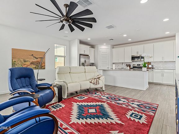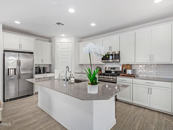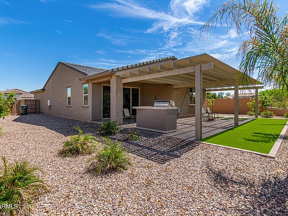 Still brand new just built in 2022 w/ only 1 neighbor and a 3 car garage! This home has it all, you just need to move in! Immerse yourself in a haven of natural light and open elegance as you step into this stunning home, uniquely positioned on a premium lot that enjoys the serenity of being surrounded by a greenbelt on three sides and only one neighbor, enhancing both privacy and the beauty of your surroundings. Modern comfort meets breathtaking greenbelt views and unforgettable sunsets right from your expansive living area, framed by large windows that draw the outdoors in. The contemporary kitchen, a showcase of functionality and style, features high-end stainless steel appliances, quartz countertops, and a generous island with a breakfast bar, making it an entertainer's delight Privacy is thoughtfully designed into the home's layout, with three bedrooms offering optimal quiet and separation. The primary suite is a retreat of its own, boasting a double vanity, walk-in shower, and direct views of the lush greenbelt, while the additional bedrooms share a well-appointed bathroom with a tub/shower combination. Step outside to a beautifully crafted patio under a new pergola, adjacent to a BBQ area that's perfect for evening gatherings, all overlooking the neighborhood greenbelt and spectacular sunsets that paint the sky. Completing this exceptional offering are a 3-car tandem garage, a reverse osmosis system, a water softener, tankless water heater, and an advanced HVAC system, ensuring your comfort in this dream home. Discover a lifestyle defined by natural beauty, convenience, and luxury.