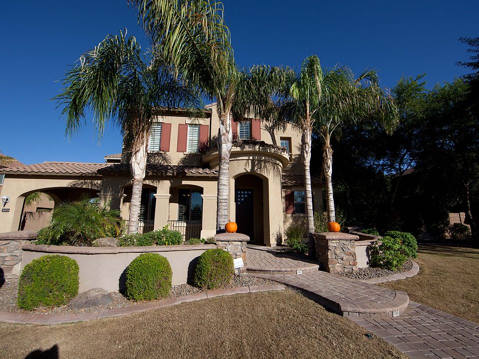 Under contract as of 10/29/17 - accepting backup offers. This beautiful Tuscan home boasts tons of upgrades, inside and out. Walk into the beautiful 2 story foyer and you are greeted by the formal living room with gorgeous custom built-ins and a cozy gas fireplace. Large formal dining room (have seen used as study, library, or music room also). Kitchen is a chef's dream with $15,000 in upgrades to cabinets and appliances...all lowers have pullouts, under cabinet lighting, granite, all stainless steel appliances, double ovens, gas cooktop, large center island, bar seating, and extra built in storage in breakfast nook. Family room with more beautiful custom built-ins. One bedroom downstairs, 5 upstairs. Two large bonus rooms upstairs - use one as a game room and the other as a theater room! Beautifully landscaped lush front and backyards with the largest and most beautiful pool in the neighborhood AND it has a heater so you can swim year round! Energy costs kept very low due to Radiant Barrier and extra insulation installed in attic and energy efficient pump on pool. This home is built for entertaining! Located less than 1 mile from San Tan Village, Discovery Park, and the beautiful Gilbert Temple!
