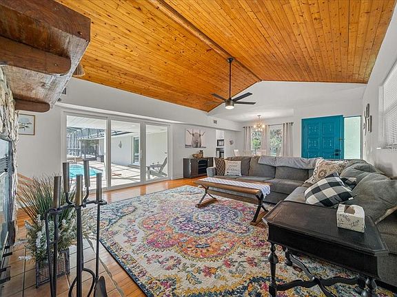 Welcome to your own private slice of Old Florida charm! A truly unique design, this home centers around a crystal-clear inground pool. The exceptional courtyard style layout offers seamless indoor-outdoor living. The spacious living area boasts warmth and architectural charm with a vaulted tongue-and-groove wood ceiling anchored by a stunning stone fireplace. The dining room is just off of the living area and the spacious kitchen featuring white cabinetry, stainless steel appliances with eat in area! Endless possibilities with two bonus rooms in addition to the 3 bedrooms! In the market for a short term rental? Turnkey potential with unforgettable charm! Guests will love the private courtyard-style pool, multiple access points from inside the home, and the peaceful, tree-shaded setting. Thoughtful design, modern comforts, and a location that feels like a hidden gem make this one a high-performing investment waiting to happen. Recent updates include a new roof and asphalt driveway in 2021 and a new 200 amp electrical panel in 2025. All five sets of sliding glass doors were updated to low-e energy efficient double paned glass in 2025. No HOA! Nestled on a generously sized 0.78 acre lot with a circle driveway convenient to downtown Ocala, the Hwy 200 corridor and I-75. Schedule an appointment for a private tour to truly appreciate all this property has to offer!
