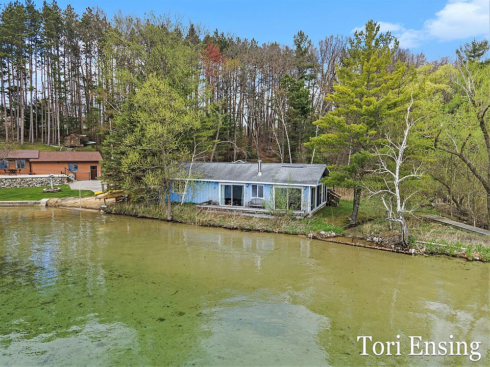 Rare opportunity! Just shy of 2 acres on highly desirable all sports Derby Lake. Sandy beach with lots of frontage. Home offers 2 bedrooms and 1 full bathroom. Good layout with open kitchen, dining room and living room with slider to deck overlooking the water. The sun room over looks the lake and stream that runs through the property. Outside you will find a great cover porch perfect for entertaining. Home also has a 2+ stall detached garage. About 1 hour to Lansing or Grand Rapids. Schedule your showing today and enjoy lake like this summer!