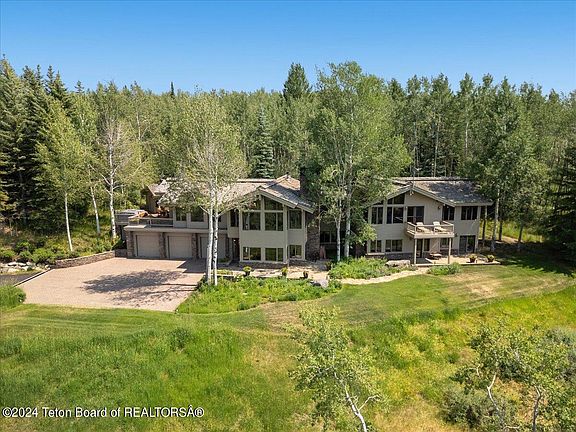 Experience the awe inspiring and unobstructed Teton views from this magnificent estate. This stunning Gros Ventre North home sits on an elevated home site with 6.2 acres of serenity and a pristine environment, providing the perfect retreat for those seeking peace and quiet. This gorgeous home features 5 bedrooms, all en-suite, and a beautiful master suite with a cozy fireplace, making it the perfect place for your family and guests to relax and unwind. Spread over two levels, the 6,278 square-foot home features living areas and a half bath on each level, providing convenience and comfort for all.