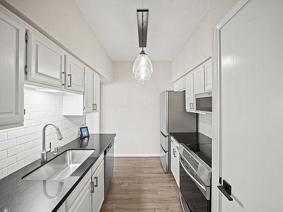 Remarkable Value for this Smartly Updated 1 Bedroom/1 Bath, w/ an Open Flowing Floorplan. Stylish Updates, of this Desirable 3rd Floor Unit, includes White Oak Hued Wood Laminate Floors, Light Grey Paint w/White Trim, & LED Recessed Lighting. Smartly Updated Kitchen touts Quartz Countertops, Subway Tile Backsplash, White Raised Panel Cabinets, Triple Glass Globe Overhead Pendant Lighting, & SS Appliance Package w/Frigidaire Gallery 4 Burner Range, Dishwasher, Whirlpool Bltin Microwave, & Haier French Door Refrigerator. Light Filled Living Area features a Triple Sliding Glass Door, Pull Down Light Filtering Shades & Tab Drapes, which opens to Covered Balcony. Dining Area features Crown Molding & a Contemporary Style Chandelier. Primary Suite boasts Walk-in Closet w/Blt-ins, Quartz Vanity, Toto Commode, & Tub/Shower w/Stone Style Tile Surround. GE Combo Washer/Dryer. Refrig/W&D Remain. Minutes to Med Center! Community offers 2 Pools, Exercise Room, & Social Room for Private Parties!