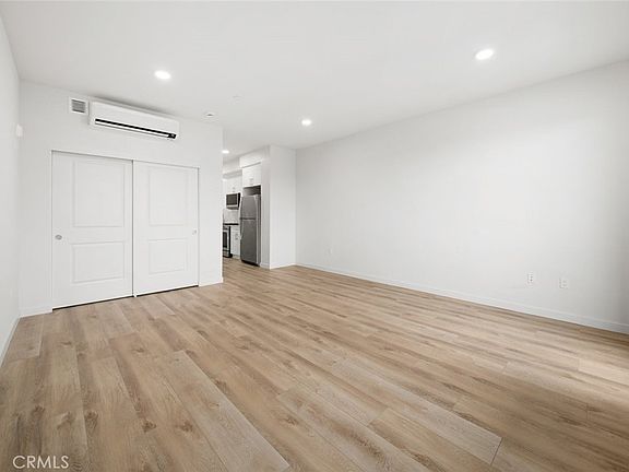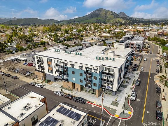 Welcome to Victoria Crossing, a remarkable collection of single-level homes in the heart of San Luis Obispo. Flat #406, built in 2024, is located on the TOP FLOOR with views of the nearby hillsides. The studio flat is accessed via a secure common lobby with an elevator to every floor. Expansive windows with custom shades flood the living space with natural light, complemented by 9 ft ceilings. A private balcony offers the perfect space to enjoy SLO's mild climate and to take in the stunning surroundings. Enjoy luxury vinyl plank flooring, quartz countertops, a stylish tile backsplash, and modern shaker-style cabinetry. Top-of-the-line stainless-steel appliances include a dishwasher, gas range, refrigerator and microwave. In the spacious bathroom you will find a a laundry closet with newer washer and dryer. The flat is equipped with double-pane vinyl windows by Milgard, ceiling-mounted LED lighting, fire sprinkler systems, hard-wired smoke and carbon monoxide detectors, and electric heating/cooling for ultimate comfort. You will also enjoy dedicated onsite parking. Conveniently located moments away from downtown San Luis Obispo and the renowned Edna Valley Wine Country, Victoria Crossing offers the perfect balance between serene living and accessibility to a vibrant urban center, the Pacific Ocean, charming coastal towns, and Cal Poly University.