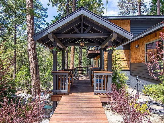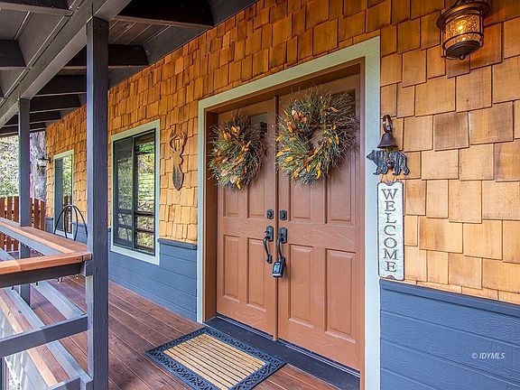 MODERN RUSTIC ON STRAWBERRY CREEK. Located on a private half acre with both stunning views and 140' of stream frontage, this beautiful Fern Valley home was remodeled in 2016 by a contractor for his own personal residence. Dramatic beamed ceilings and expansive picture windows highlight the open floor plan with large great room with wood stove, huge kitchen with generous cabinet and counter space and breakfast bar plus spacious dining area. A separate family room has a stunning floor to ceiling rock fireplace with wood stove insert. Attention to detail is evident throughout with beautiful wood finish work combined with modern surfaces of granite and tile. There are 4 bedrooms, 2.75 baths, spacious laundry room, skylights, propane forced air heat, attached 2 car garage, lots of parking and a separate paved RV pad with dumping station. Wrap around decking includes a large deck off of the great room, overlooking the beautiful Strawberry Creek setting and dramatic views of Suicide Rock. Below, there is a large, flat area near the creek, ideal for relaxing to the sights and sounds of the surrounding natural beauty unique to this special one of a kind property.