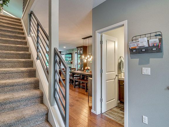 Tree house home backing to a greenspace and creek.View of the Columbia River.Contemporary home w/lots of natural light,metal staircase & engineered hard wood floors,Open floor plan,kitchen with:gas stove,slab granite,ss appliances,large island,custom cabinets.Great room with: built ins and gas fireplace.Huge master suite with double sinks, jetted tub & walk in closet.Unfinished basement with over 800 sf feet for storage or build it out into extra living space.Deck overlooking private yard.