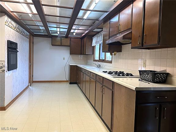 Welcome home to this inviting 3 bedroom brick and vinyl ranch, offering comfort, character, and plenty of potential. Sep inside into a spacious living room with a wood burning fireplace, perfect for cozy evenings. The living room flows seamlessly into a large gallery-style kitchen, complete with a built-in cooktop and oven- ideal for anyone who loves to cook. Enjoy family meals in the dining room, which opens to the backyard through a newer sliding door. All 3 bedrooms are generously sized, and the large first floor bath adds convenience to everyday living. As a true ranch, all primary living space is on the main level. The basement offers a wide open slate, ready for your vision; rec-room, workshop, home gym, or storage. The washer and dryer stay for added value. Additional highlights include: Hardwood floors under carpet, garage door and opener just a couple years old, and a hot water tank replaced 3 months ago! This home is ready for its next chapter...come make it your own.
