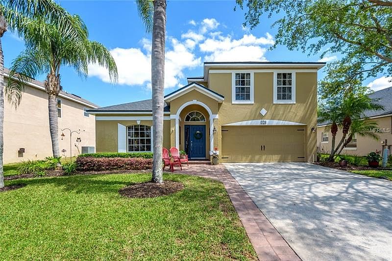 Beautifully kept 2 story home in a gated community with excellent amenities & low HOA, a must see home. Walking into the home you'll find a formal living & dining room with real wood floors. The kitchen has 42" cabinets with thermal-seal on the front of the cabinets & crown modeling on the tops. It has granite counter tops & a big closet pantry. The living room is spacious & looks out to the beautiful backyard. The sliding glass doors leading out to the lanai are double paned & tinted. The master bedroom has laminate floors with a large walk in closet & beautiful crown modeling. The master bathroom has dual sinks with granite counter tops, a garden tub with jets & a separate title shower with a rain shower head. All the window sills are made of marbel. The screened in lanai looks out onto a beautifully landscaped backyard with a fence that encloses the backyard. The upstairs includes a spacious bonus room, great for a play area, office or movie theater. There are 3 spacious bedrooms upstairs. There is an upgraded bathroom upstairs that offers a door to separate the sinks from the shower. You can even sunbathe on the lanai roof! The AC was replaced April 2017. The roof was replaced October 2017. All the appliances are stainless steel in the kitchen & the dishwasher is brand new. Come & check out this beautiful home in a great community. The amenities include: tennis courts, basketball court, community pool & playground.