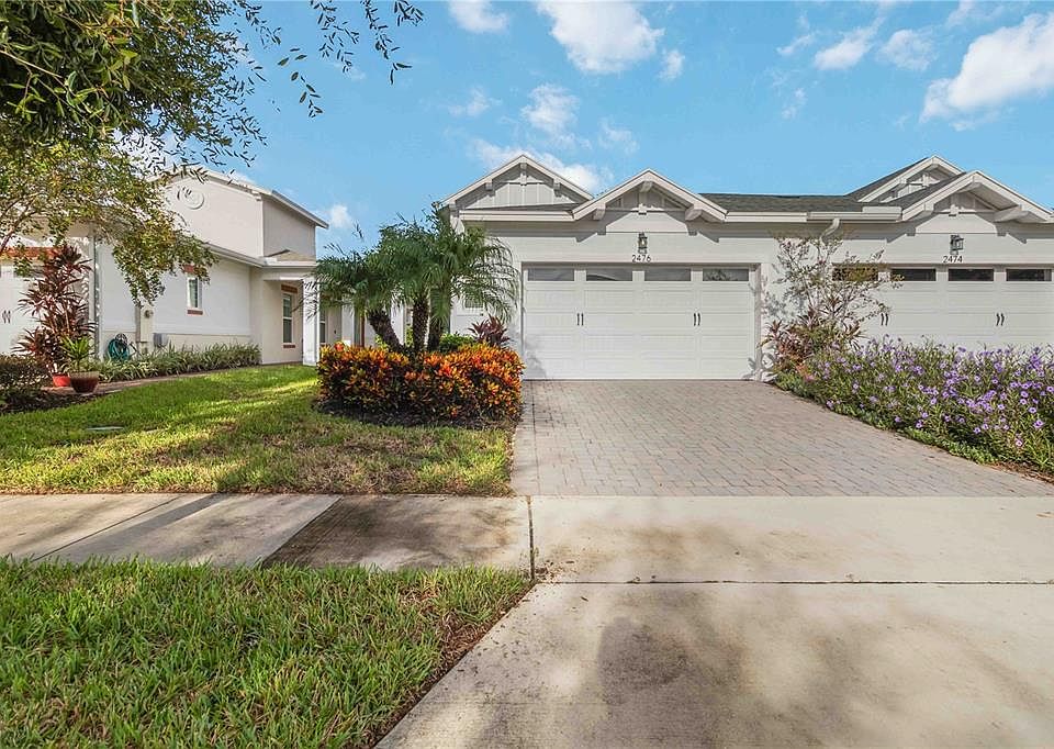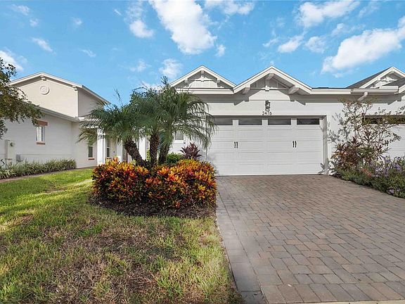 Beautiful Amelia floor plan located in the well sought after Gated 55+ Active Del Webb Twin Lakes community. Twin Lakes HOA is responsible for the exterior of the villa, as well as maintaining the roof of the villa! Walk into the breathtaking property featuring ceramic tile and Engineered hardwood floors in the bedrooms. Professionally painted, Upgraded kitchen 42" Light Cabinets, pantry, custom rounded granite countertops, Custom bubbled glass Pendant lights, and chandelier. The living room features a transit window for extra natural lighting. Sliding glass doors lead to Lanai which features a privacy screen on the lanai that shades the sun, to enjoy your morning coffee or entertaining family and guests. Primary bedroom features a tray ceiling, and ceiling fan with light. The primary bedroom bathroom features a walk-in closet with shelving, glass shower doors, custom shaped flooring in the shower, and custom tiling. Double vanity granite countertops. Laundry room has tailored lower cabinets for great storage. Guest bedroom ceiling fan with light and custom blinds. Amenities include a Resort style pool, Lap Pool and 3rd pool on the carriage house side, 20,000 square foot Gorgeous Clubhouse, State of the art Fitness Center, Flex room, Tennis Courts, Putting Green, Walking Trails, Pickle Ball Court, Fishing, Kayaks, Pontoon Boats and Jon boat to use on Live Oak Lake! The community has many active and socializing activities. View today!