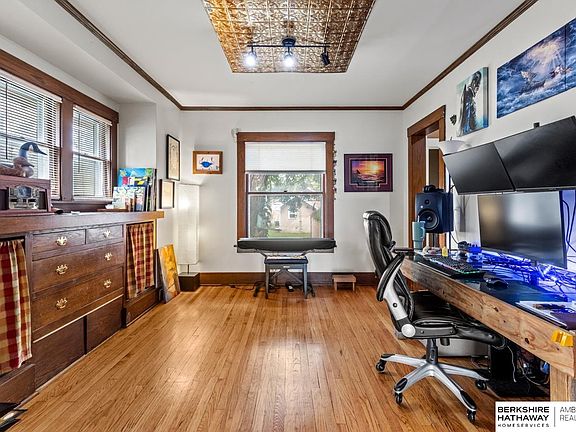 This classic 2.5-story home is full of charm and potential while retaining timeless touches like the original wooden staircase and woodwork throughout. It offers features rarely found in nearby homes, including a spacious living room and large dining room. Upstairs, you will find a full bathroom and three generously sized bedrooms, each with its own walk-in closet. The finished basement provides flexible living space that could be used as a home office, guest area, or second living room. It is accessible from both the interior staircase and a separate entrance, giving future potential for added privacy or rental use. Outside, the long driveway leads to a two-car garage with plenty of extra parking. Conveniently located with quick access to downtown, Creighton, UNO, and midtown Omaha, this home combines space, character, and opportunity in one package.