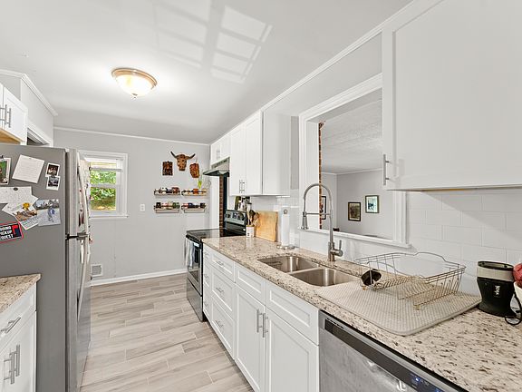 Fenced backyardSeparate denStainless steel appliancesWhite cabinetryRefinished hardwood floors