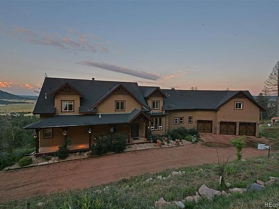 Spacious home on amazing acreage with endless views. Property has 119 acres (part in a conservation easement) backing up to Pike National Forest, so you have rare private access to over a million more acres of wilderness. Twenty minute commute south to Colorado Springs or north to Castle Rock from this private retreat. Great property for hiking, ATV riding, horseback riding, mountain biking, hunting, and all other outdoor activities. Enjoy wildlife daily--deer, elk, turkeys, bears, foxes, and more. Plenty of room with over 4700 square feet above grade with 6 bedrooms and 4-1/2 bathrooms plus a study. Almost 2500 sq.ft. sun filled basement waiting for your finishes. Spacious family room has spectacular unobstructed views. Access the back deck from the family room, kitchen, or master bedroom and enjoy the scenery, or sit around the gas fire ring at night. Well-appointed kitchen with stainless steel appliances, including a six-burner commercial gas range. Oversized 3-car garage.