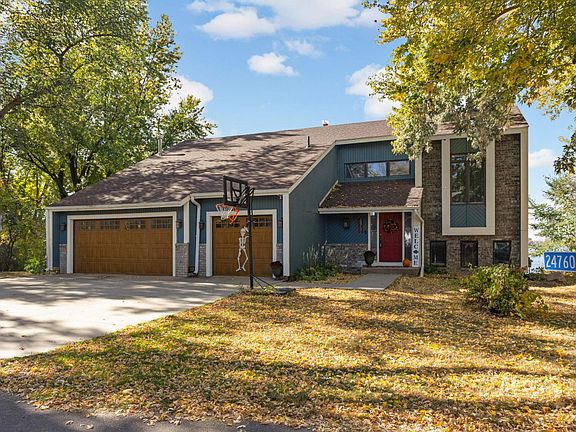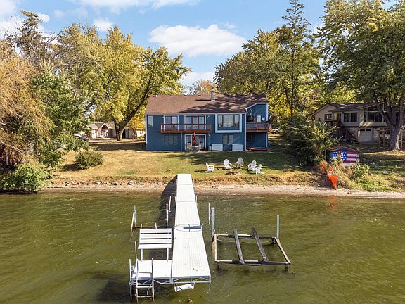 Hard to find Large Level Lakeshore lot Plus AMAZING Sunset views! Bring your Buyers for 97' of lakefront enjoyment! Vaulted Custom Home with Large owner's suite w/ walk-in closet, double sinks, separate shower, whirlpool tub! 1/2 bath on main level as well! HUGE kitchen with island! Laundry on main living area! Lower level walkout with large family room, fireplace, and 3 bedrooms! Heated and insulated 3 CAR garage! NEW Roof 2022, A/C and Furnace New 2021, newer flooring. Great level lakeshore and large side yard. Open floor plan! Hard to find this setting with most rooms on the waterfront! Flex possession possible! See it NOW!