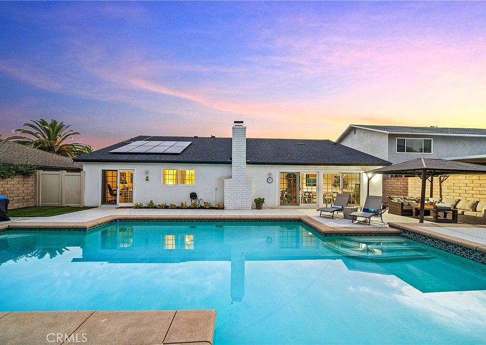 Presenting an unparalleled opportunity for single level pool yard living in highly sought after Mission Viejo. This stunning, turnkey residence is a freshly updated, single-level home, designed for effortless living. With 4 bedrooms, 2 bathrooms, and a meticulously finished 2-car garage with an epoxy floor, 2024 roof, & solar, this property exemplifies ease of enjoyment and comfort. Step inside to find a grand entrance with a vaulted beadboard ceiling which sets a tone of elegance. The open-concept design seamlessly connects the living spaces, which are adorned with luxury vinyl flooring and filled with natural light from dual-pane windows. The renovated kitchen is a culinary enthusiast's dream. It showcases elegant quartz countertops, soft-close cabinetry with convenient pullouts, and high-end stainless-steel appliances. A sizable farmhouse sink, walk-in pantry, and breakfast bar provide both style and functionality, while an adjacent bonus living/dining area offers versatile space. The formal dining room opens directly to the backyard, creating a seamless flow for indoor-outdoor pool party gatherings. The home's serene living extends to a primary suite with elegant fixtures, a charming bay window reading nook with top-down/bottom-up blinds, and dual closets. The accompanying primary bathroom features a walk-in shower. Three additional bedrooms are equipped with ceiling fans and closet organizers, with two providing direct sliding door access to the beautifully landscaped backyard. A private oasis, the backyard features a stylish patio cover and a welcoming oversized swimming pool which will be perfect for countless days of fun in the sun with neighbors, family and friends. The spacious driveway offers ample parking for up to four additional vehicles. Beyond the property's boundaries, residents enjoy the exceptional benefits of the Mission Viejo lifestyle. Known for its safety, strong demographics, and outstanding quality of life, Mission Viejo provides access to award-winning schools and a wealth of recreational amenities, including over 40 parks, recreation centers, and access to freeways for convenient commuting. This unique property is also exempt from an HOA, offering enhanced freedom and financial savings. This is a rare opportunity to acquire a turnkey, single-level pool residence in one of the most coveted master-planned communities. We invite discerning buyers to experience the perfect blend of style, comfort, and convenience. Welcome Home!