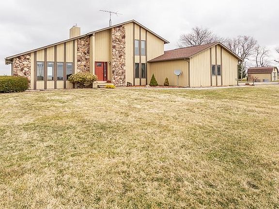 This lovely home is situated on almost 3 acres, has a large pond and has been well taken care of! The living room has vaulted ceilings, exposed wooden beams and a beautiful fireplace. The kitchen has endless amount cabinet space. Enjoy a quick trip down to Sauders Village. Your little country oasis is just waiting for your personal touch.