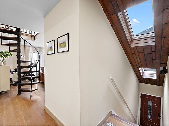 Unique spacious loft style living in Fort Lee NJ, 2 minutes from the GWB! Unit has 4 beds 2 full baths, newly renovated with washer and dryer in unit. Kitchen features a wraparound window for plenty of sunlight including dual access to the large patio space. Loft style high volume ceilings in the living room area, with a spiral staircase to the additional spacious room and office workspace on the top level. Main level features the primary bedroom with an en-suite bath + walk-in closet and 2 additional bedrooms and sleek bathroom. Rent includes 1 garage + 1 driveway parking spots.