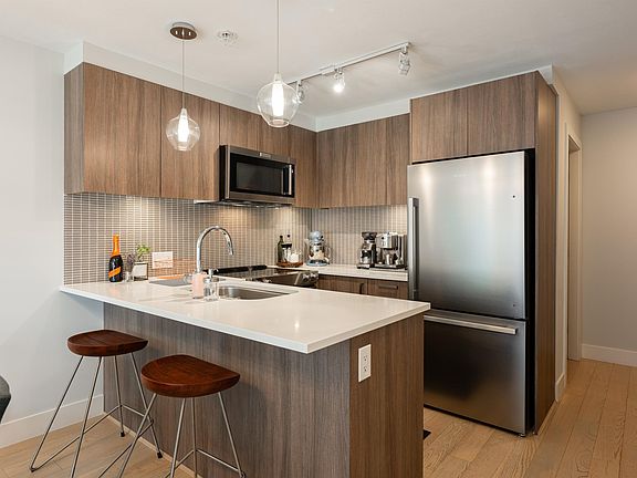 Your next home is this immaculate condition 1 bed + den + flex! This Mount Pleasant sanctuary is located on the upper level in the quiet boutique building: Midtown by Port Living. Bright south exposure with space for you to work from home or to relax and entertain. Features include: oversized windows, quartz countertops, Grohe fixtures, heated bathroom floors, stainless steel appliances, FULL size in-suite washer/ dryer, a new 2024 fridge, shelving in the flex room, and refreshed ceiling + walls. Amenities include a community garden & playground on 3rd floor with the pharmacy, restaurants, bakeries, cafes, groceries at your doorstep! Mount Pleasant Elementary schools, Emily Carr, & Dude Chilling Park just a short walk away. OPEN HOUSE Sat Nov 8 @ 12-2 or book your private appointment!