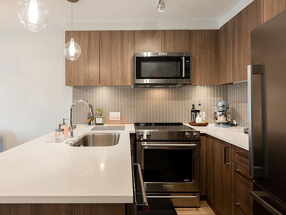 Immaculate conditionBright south exposureOversized windowsQuartz countertopsGrohe fixturesHeated bathroom floorsStainless steel appliances