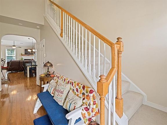 Fantastic End-Unit Townhome in Watermill w/1st Floor Primary Suite! This exquisite property boasts a brick exterior and direct-entry two-car garage w/epoxy floor. Enjoy 3 BR, 2.5 BA, 1,822 square feet, hardwood floors, vaulted ceilings & spacious second story loft. Be invited into a warm foyer guiding you into the wide open living spaces. Gourmet kitchen flaunts granite counters, tile backsplash, stylish white painted cabinetry, SS appliances, bar-seating & pantry. Dining area flows effortlessly to incredible family room featuring elevated ceilings & cozy gas fireplace w/detailed mantle. Access to fabulous outdoor space reveals large rear deck, doubling your entertainment space w/ seasonal views of the Reservoir. Retreat to a stellar, highly coveted 1st floor primary suite offering walk-in closet and en suite bath w/tile floors, dual vanity and walk-in shower with glass enclosure. Upstairs hosts a spacious loft area, ideal for the kids to enjoy their own private hangout. Two additional generous-sized bedrooms each offer oversized closets, sharing hall bath w/tub/shower combo. Satisfy all of your storage needs in huge walk-in storage space, pull-down attic & attached two-car garage.
