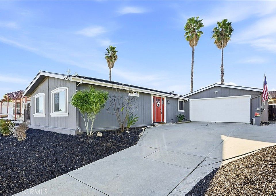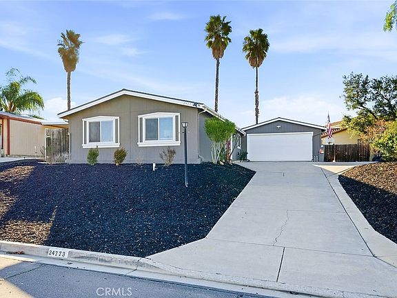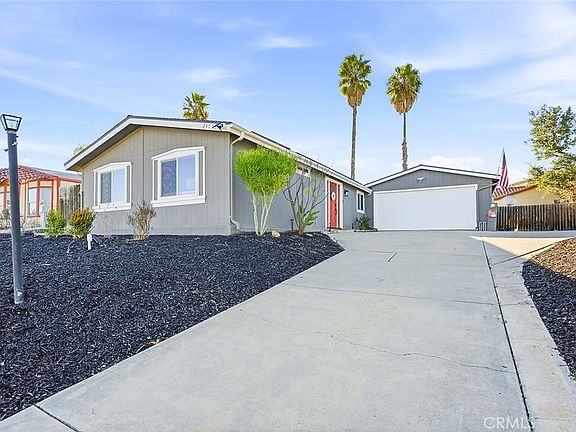 Welcome to this beautifully fully remodeled 3-bedroom, 2-bath home located in the heart of Wildomar, offering 1,344 sq ft of modern living on a spacious 7,841 sq ft lot with potential RV parking, with room to extend for longer trailers (verify HOA rules). This manufactured home on owned land is ideal for first-time buyers and has been thoughtfully upgraded throughout, featuring a new luxury kitchen ideal for chefs, fresh interior paint throughout, new flooring, new windows, a renovated primary bathroom, and a new HVAC system, along with a roof replaced just a few years ago and the $50k solar system will be fully paid off for the new buyer for added energy efficiency and long-term savings. The home also includes a bonus room behind the garage, perfect for storage or a home office, adding flexibility to the floor plan. Step outside to enjoy the backyard under the new Alumawood patio cover, ideal for relaxing or entertaining, while benefiting from extensive community amenities including 3 pools, 2 spas, fishing pond, baseball & soccer field, basketball court, two RV storage areas, and hiking trails! This move-in ready, turn-key home offers comfort, efficiency, and outstanding value in a great location.
