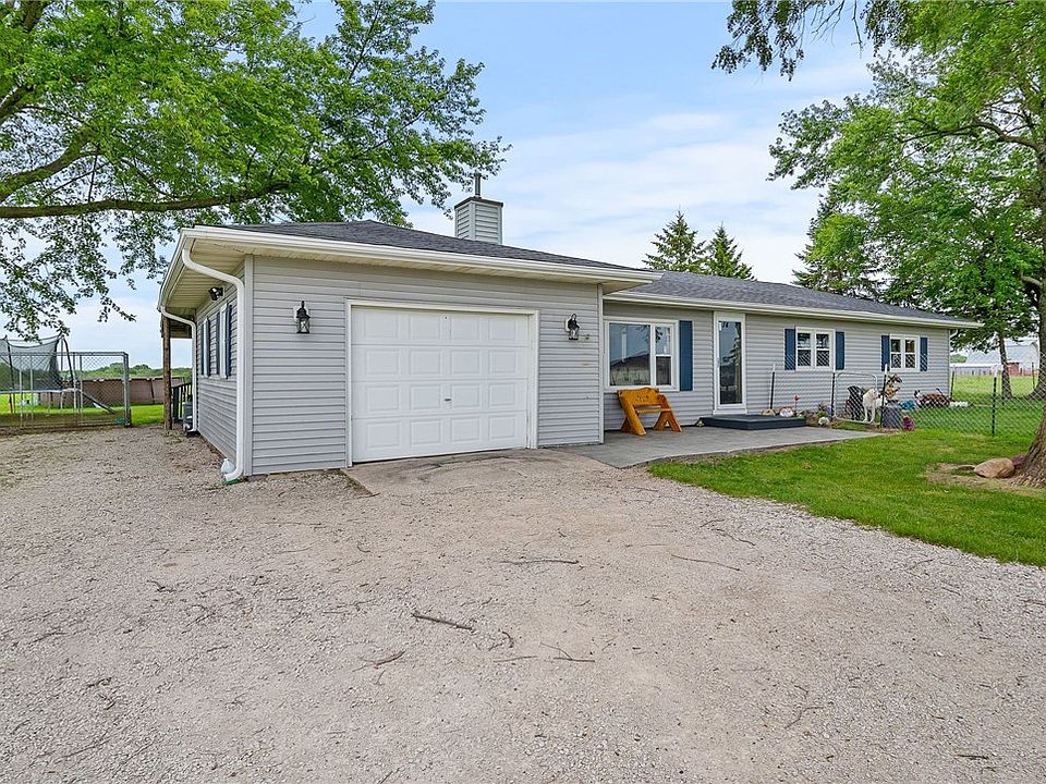 Ranch home situated on over 5 acres with a stocked pond and on pavement. Inside the front door you will find a great living room and kitchen area. The main floor consists of three bedrooms and a full bathroom and one half bathroom. Most of the house has been updated and very well taken care of! Outside there is a great deck over looking the beautiful property and sunsets. A brand new shop has also been built with spray foamed ceiling and a loft. There is a lot of storage with the new shop! Don't miss out on this great property!