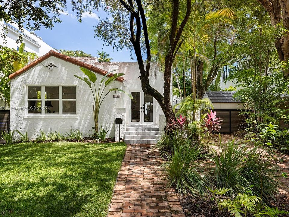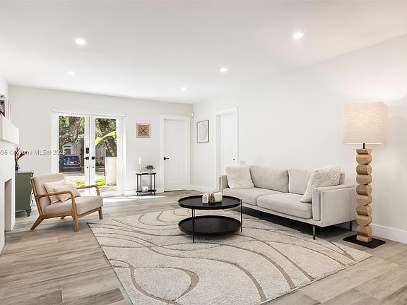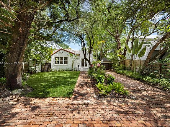 Captivating home on a quiet tree canopied street in prestigious North Coconut Grove. Recent major updates include: impact-rated windows & doors, new kitchen/bath cabinetry + new plumbing & light fixtures. Enter into light-filled living spaces featuring an original fireplace, wood-plank style tile flooring & a white color palette throughout. Open kitchen w/wood cabinetry, quartz counter tops and cooking island w/seating. Main house has 3BR/2.5BA + 1BR/1BA guest house with kitchen & living room. Enjoy outdoor living & entertaining in the ultra-private tropical back yard with grotto-style pool & waterfall. High sea-level elevation (not in a flood zone). Walk or bike to bayfront parks and the historic Grove village’s trendy boutiques & cafes. Just minutes to downtown, MIA & the Beaches.