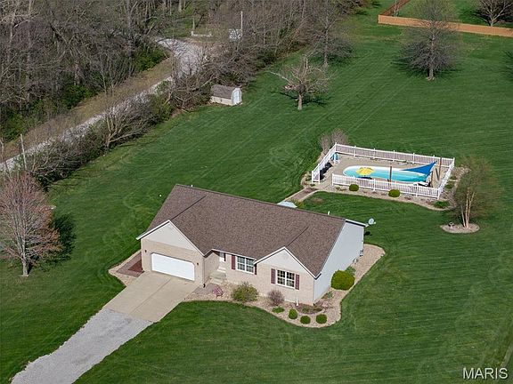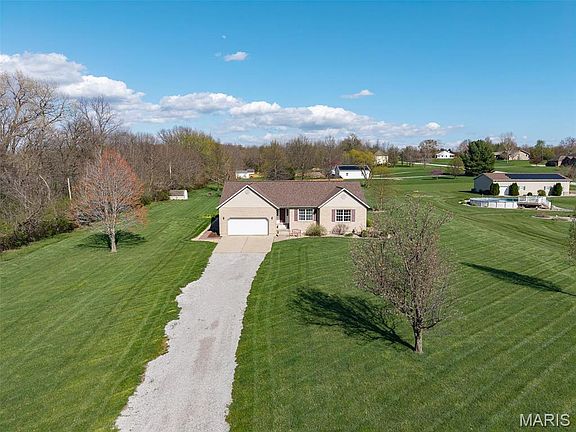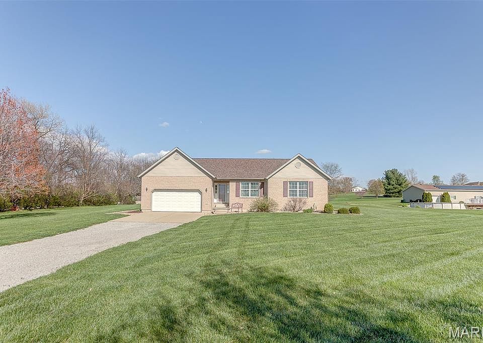 This is where fun meets functional and your entertainment essentials start here. A beautiful 2 acre lot and with patio season approaching lets add an inground fenced pool with a patio outside the home and around the pool. Every party will be at your house. This lovely ranch home has a 27'x27' great room in the lower level along with a bar area (bar can be removed) office area and a bath. Now imagine your perfect house. A living room/dining kitchen with a cathedral ceiling and open floor plan, gas fireplace and a lovely entry way. The first floor laundry room off the kitchen/garage is a perfect mud room. With 3 bedrooms and 2 baths you will enjoy the spacious primary bedroom/bath & walk-in closet. Triad High School, Marine grade school and a perfect location with privacy and convenience. The open kitchen has ample cabinetry and counterspace plus all appliances stay. 24.2 Miles to Scott Air Force Base. Marine Grade School / Triad High School.