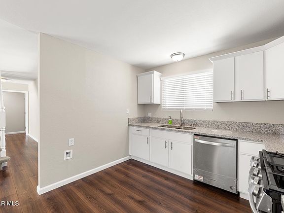 Beautifully remodeled home in the heart of central Simi Valley, boasts 5 bedrooms (one bedroom downstairs), 2.5 baths and has over 1800 sq ft of living space. Kitchen has been completely remodeled with granite counters and brand-new appliances and is open to the dining and living area. Home also features new wood-like flooring and baseboards throughout, plus new carpet on the stairs; there is a fresh interior paint, new faucets and fixtures; new windows and blinds; new garage doors; and lovely refreshed bathrooms. Front yard has drought resistant landscaping and the large private backyard has infinite potential. There is RV access and even a charming white picket fence! Do not miss this incredible opportunity.