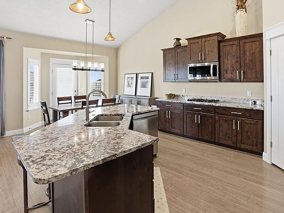 Walkout basementFull kitchenOpen-concept main levelPlantation shuttersDouble ovensCozy fireplaceVaulted ceilings