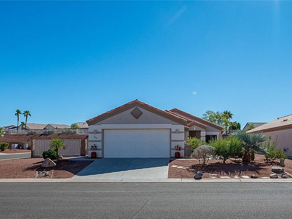 Welcome to Fox Creek Wingate! You re going to love this beautiful fully furnished home in a friendly, all-ages community with a pool and clubhouse perfect for relaxing, socializing, and enjoying Arizona living. This 1,614 sq. ft. home offers 2 bedrooms plus a den that can easily be used as an office, craft room, or extra guest space. Inside, you ll find a nice mix of laminate, tile, and carpet flooring, along with ceiling fans throughout to keep things cool and comfortable. The bright rear kitchen features a breakfast bar, lots of cabinet space, a large pantry, and a gas stove with built-in microwave great for cooking and entertaining. The dining area just off the kitchen overlooks the beautifully landscaped backyard, making it the perfect spot to enjoy your morning coffee or a quiet dinner at home. The spacious primary suite includes a walk-in shower and a large walk-in closet, while the guest bedroom also has its own walk-in closet. You ll also appreciate the indoor laundry room and a finished garage with selves and a handy work area. Both the front and backyard are landscaped, giving the home great curb appeal. Out back, you can unwind under the pergola and enjoy the peaceful setting with mature trees and plenty of space to relax or entertain. There s even a side drive with RV parking for your boat or toys. Located just off Bullhead Parkway, you ll be minutes away from the Colorado River, Lake Mohave, and the Laughlin casinos ideal for weekends full of fun and sunshine!