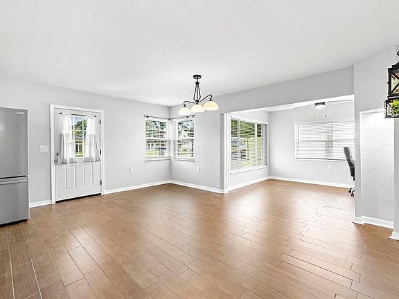 Screened lanaiFreshly painted interiorsSparkling poolWhite vinyl fencingNew vinyl plank flooringThoughtfully designed living spaceStone countertops