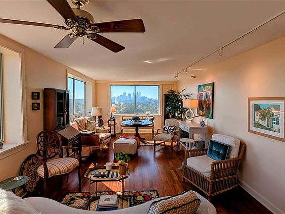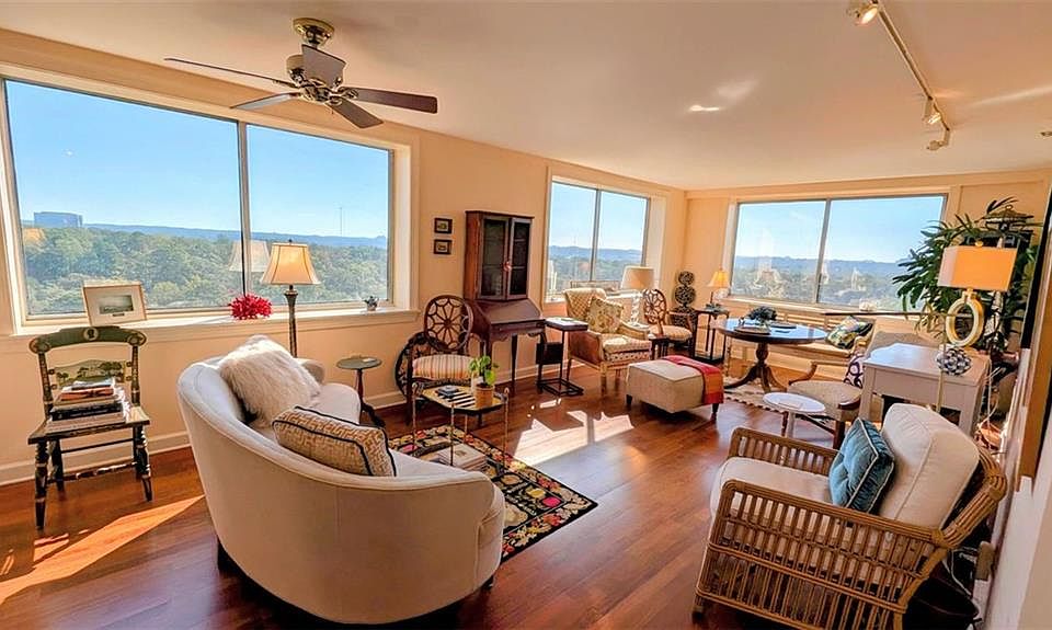 Located in the Peachtree Battle area of Buckhead, Parklane Unit 1417 offers a balance of modern convenience and wooded seclusion. The large, panoramic views offered by this corner unit on the 14 th floor give you the feeling you are miles above the woods, while the Atlanta skyline just beyond reminds you of the proximity of countless restaurants and shops. Thoughtfully designed, this unit offers ample natural lighting, several large closets with multiple organizational features, updated bathrooms, a private laundry space with pull out ironing board and built-in laundry baskets, fresh painting, and freshly finished floors and carpets. The master bedroom features an en-suite bathroom and walk-in closet. The spacious living area is ideal for both hosting or just enjoying a quiet night in, with breathtaking views offering a stunning backdrop to whatever your night entails. Residents also enjoy covered assigned parking, as well as the community pool and sundeck, fitness center, 24-hour concierge, and common area with a pool table and work areas. The all-inclusive HOA covers electricity, water, and gas; the owner only pays for internet and TV. With top-tier dining, shopping, and green spaces including the Park Lane Dog park and nearby Duck Pond just moments away, it's the perfect place for a picnic or walking the dog. This condo offers the perfect blend of luxury and urban convenience.