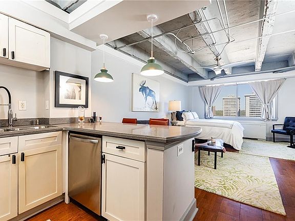 Modern upgradesContemporary fixturesExposed ceilingBreathtaking viewsHardwood floorsUpdated studio condoOpen layout