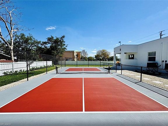 The interior is a modern masterpiece, where detail will delight any discerning visitor. Luxury and refined elegance combined with casual and comfortable furnishings makes this open-concept design perfect spot and creates the ultimate space for entertainment by seamlessly connecting the living, dining, kitchen and outdoor areas. High-end finishes throughout and views on your private pile ball court can bring the outdoors into every room. Retreat to the opulent primary bedroom living & dining areas and gourmet kitchen & bar with dishwasher & refrigerator. Harmonious blend of luxury ,nature & unique private Pickle-ball Villa(only one in Florida) has a modern flare close to downtown Naples that is Pickle -ball Capital of the World . BRAND NEW CONSTRUCTION Could fit up to 16 people using the game room and great room pullouts. Be the first guests to take advantage of this exciting location with your private Pickleball court close to downtown Naples, Celebration Park, Rebecca's Wine Bar, Botanical Garden, Naples Pickleball Center, Cloud 9 Exotics, and the Naples beaches. Special pricing for golf at Tiburon Golf Club. The style is modern Miami white with polished concrete floors. There are 4 master bedrooms designed to support 4 couples, or 8 individual guests - total 16. The game room is for gathering and workspace. Backyard has a lanai that overlooks a private pickleball court that is shared with other side of duplex.