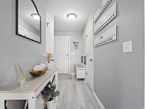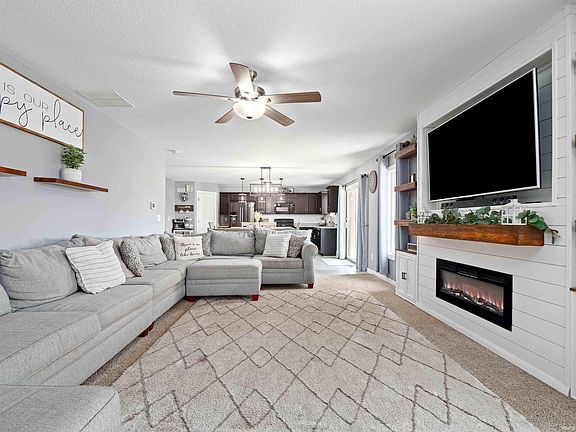 Discover this feature-rich 4-bedroom home in Towne Square, built in 2016 and thoughtfully enhanced for modern living. Offering 1,821 square feet, this two-story home sits on a fenced lot with an extended outdoor living area complete with a lighted gazebo, cement patio with firepit, and soffit can lighting, perfect for evenings outside. An aluminum shed and epoxy-coated garage floor add to the home's functionality. Step inside to an inviting open-concept main level with durable plank flooring in both the living and office spaces. The living room showcases a custom mantle with electric fireplace and ceiling fan wiring. The kitchen is designed for convenience and style with a single-bowl sink, touchless faucet, tile backsplash, and modern light fixtures. A barn door entry to the office, accent wall with built-in shelving, and fresh, neutral paint in all common areas add custom touches throughout. Upstairs, you'll find four spacious bedrooms, including a primary suite with walk-in closet and private bath. All bedrooms have been freshly painted in the past two years, and the master includes a new ceiling fan with light. An extra 2 feet added to the rear of the home provides additional space and flexibility for daily living. From curb appeal to curated interiors and outdoor entertaining, this home combines thoughtful upgrades with everyday comfort in a desirable location, about 15 minutes from downtown Fort Wayne.