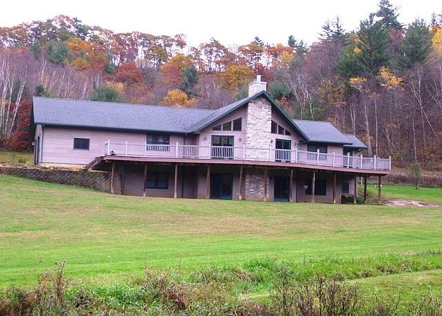 Located at the end of a dead end road. Awesome views from every window. Open Concept. Private pond is stocked w/fish, has a picnic area & fire pit. Awesome 32' X 68' Commercial building/shop is heated w/in-floor heat, 3/4 bath, office, storage & large overhead doors. Both Fireplaces have been completed w/stonework or Brick. Large composite deck overlooking yard, trees, pond, etc. Open oak stairway to lower level w/walk out, in-floor heat & kitchenette w/sink & cabinets. Located near Bike Trail.