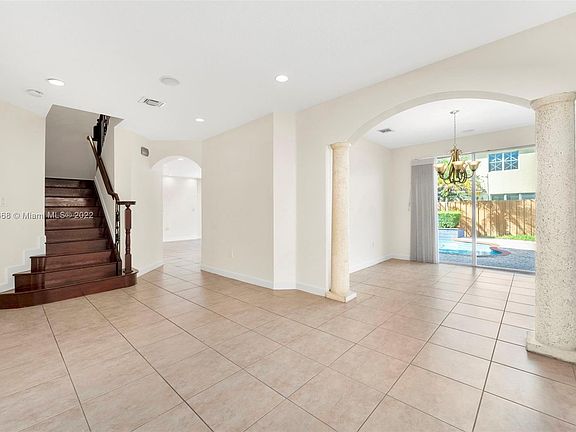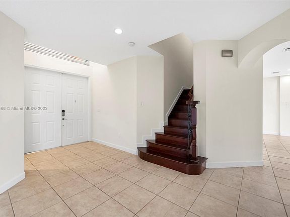 One-of-a-kind single-family estate home in Homestead community, on a private cul-de-sac with roving security. Centrally located adjacent to Florida's Turnpike exit 9 (112 Ave) and within walking distance to Publix, Aldi, CVS, Wawa, and more. The property features an extended brick paver driveway for ample parking, 2 car garage, a backyard for entertaining with an in-ground pool, a waterfall feature, and a jacuzzi. The breathtaking staircase with hardwood and wrought iron bars provide an upscale look and grand entrance. This spacious 5-bedroom, 3-bathroom home has been recently painted inside and is move-in ready. The home has been wired for smart home automation throughout including a burglar alarm feature. Two central AC units, Luminette shades w/ blackout, & more. Must see to appreciate!